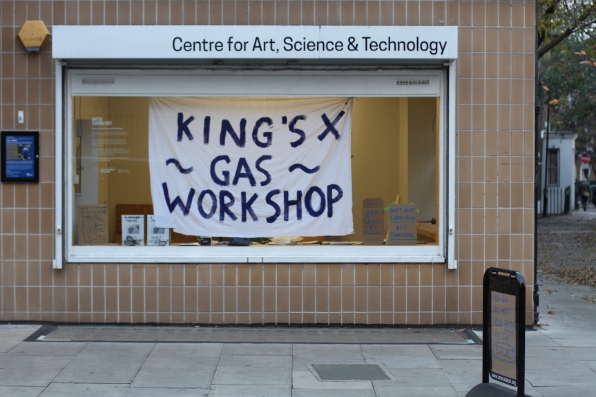 The residency aimed to explore narratives of a past, present and future King’s Cross, encompassing on one hand its industrial history as a site of gas production, marked by its iconic gas holders (now luxury flats), and on the other, a possible future for collective, bottom-up energy production, in the context of the environmental and economic collapse that seems to be just round the corner.